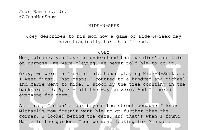 Synopsis: Joey describes to his mom how a game of Hide-N-Seek may have tragically hurt his friend.