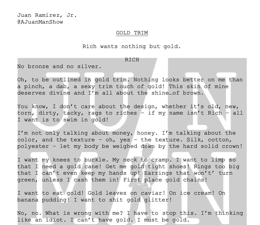 Use: Monologues are to be use for auditions, educational and showcase purposes. All monologues posted on social media, websites and all other public outlets must credit: