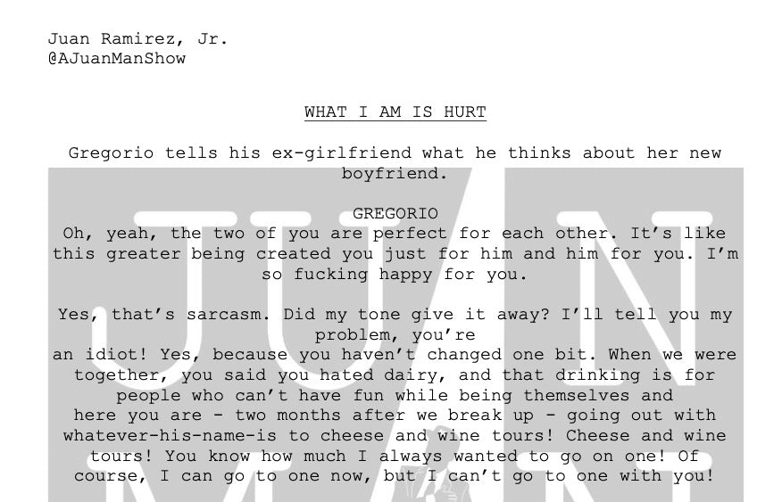 Use: Monologues are to be use for auditions, educational and showcase purposes. All monologues posted on social media, websites and all other public outlets must credit: