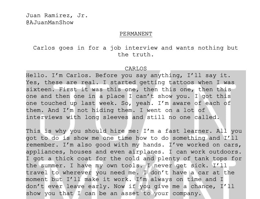 Synopsis: Carlos goes in for a job interview and wants nothing but the truth.