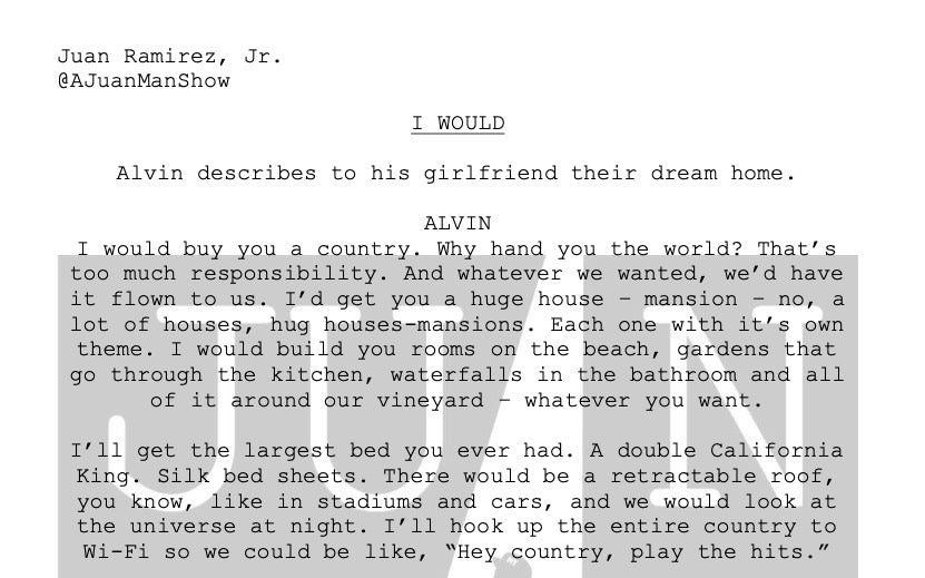 Use: Monologues are to be use for auditions, educational and showcase purposes. All monologues posted on social media, websites and all other public outlets must credit: