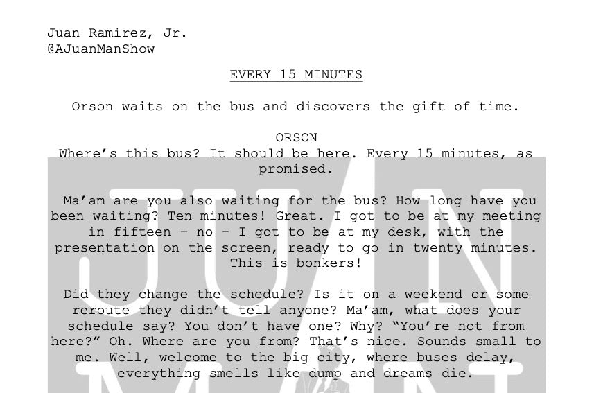 Synopsis: Orson waits on the bus and discovers the gift of time.