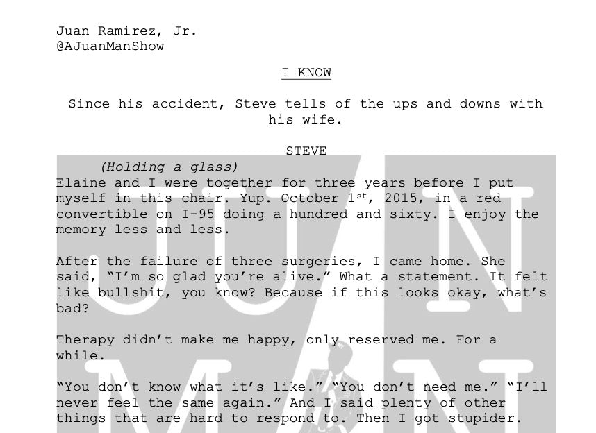 Use: Monologues are to be use for auditions, educational and showcase purposes. All monologues posted on social media, websites and all other public outlets must credit:
