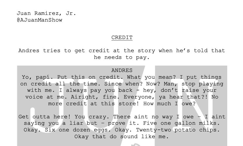 Synopsis: Andres tries to get credit at the story when he’s told that he needs to pay.