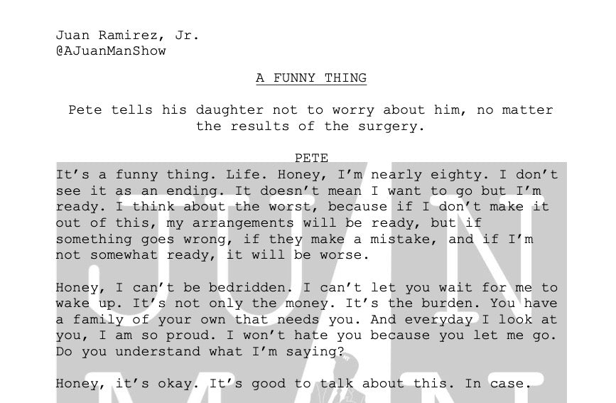 Use: Monologues are to be use for auditions, educational and showcase purposes. All monologues posted on social media, websites and all other public outlets must credit: