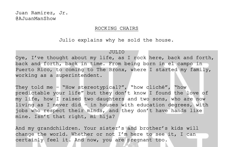 Use: Monologues are to be use for auditions, educational and showcase purposes. All monologues posted on social media, websites and all other public outlets must credit: