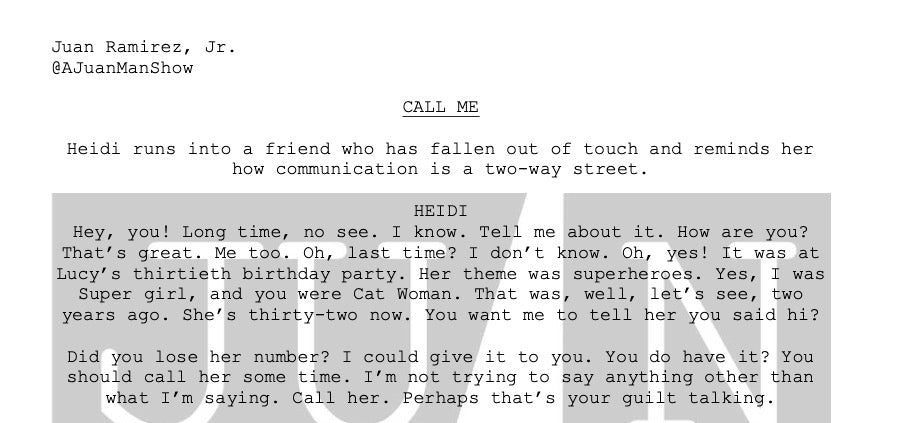 Use: Monologues are to be use for auditions, educational and showcase purposes. All monologues posted on social media, websites and all other public outlets must credit: