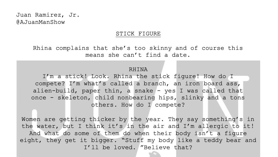 Use: Monologues are to be use for auditions, educational and showcase purposes. All monologues posted on social media, websites and all other public outlets must credit: