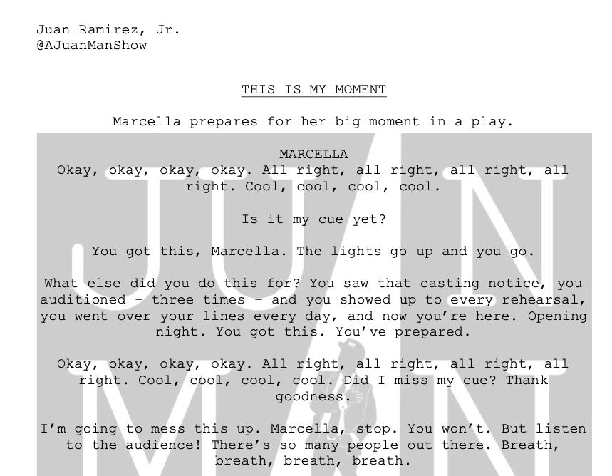 Use: Monologues are to be use for auditions, educational and showcase purposes. All monologues posted on social media, websites and all other public outlets must credit: