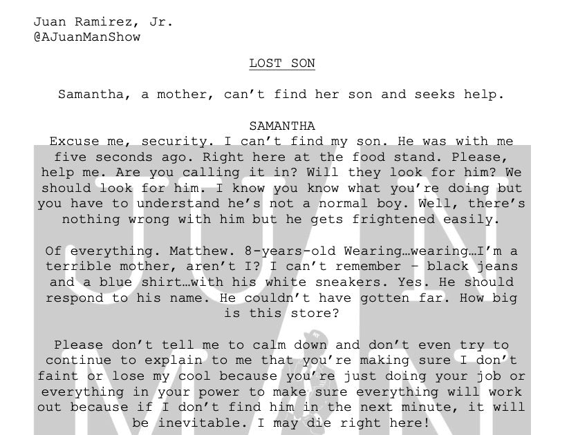 Use: Monologues are to be use for auditions, educational and showcase purposes. All monologues posted on social media, websites and all other public outlets must credit: