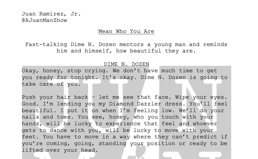 Use: Monologues are to be use for auditions, educational and showcase purposes. All monologues posted on social media, websites and all other public outlets must credit: