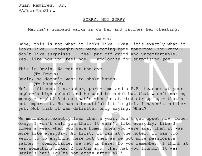 Use: Monologues are to be use for auditions, educational and showcase purposes. All monologues posted on social media, websites and all other public outlets must credit: