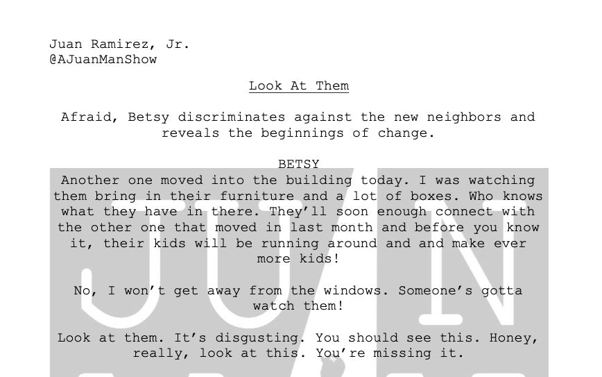 Use: Monologues are to be use for auditions, educational and showcase purposes. All monologues posted on social media, websites and all other public outlets must credit: